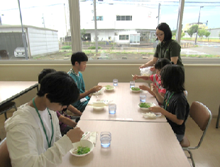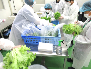 最後に「アグリネ」で栽培したレタスを一口大の大きさにし、盛付けして試食です。