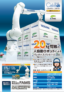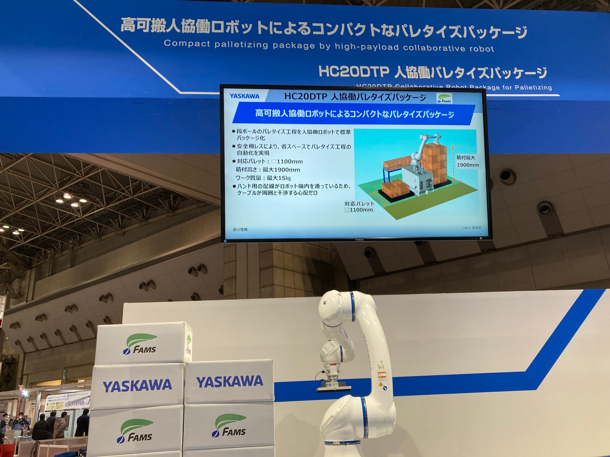 FAMSは、安川電機ブースにて人協働ロボットパレタイザ『Cobopal』を実機展示いたしました。