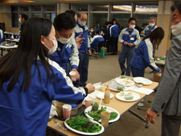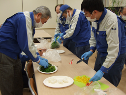 部門対抗で予算1000円以内の材料で料理を作り、全従業員で試食・投票を行いました。