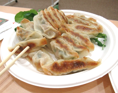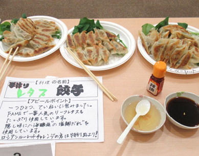 レタスと塩麴だれがアクセントの手作り餃子でした。お楽しみとしてワサビ入り餃子チャレンジも用意されました。