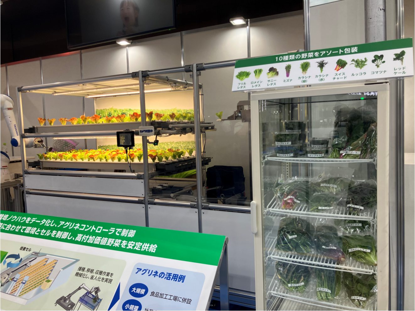 また、自社の栽培検証機で栽培した10品種の野菜を展示しました。