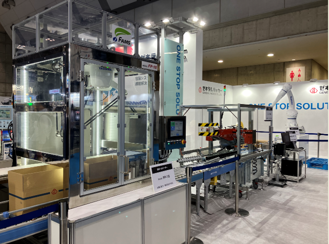 FAMSのパッケージ製品のケーサとパレタイザを展示しました。